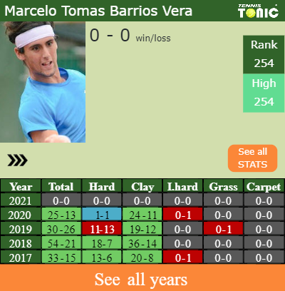 The pick for Tennis Tonic is Marcelo Tomas Barrios Vera who should win in 3 sets.