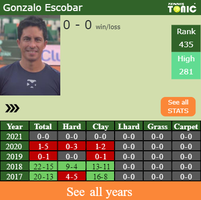 In terms of his career, Escobar has an overall 89-85 record. He has a positive 24-22 record on hard.