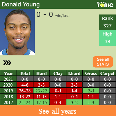 In terms of his career, Donald has an overall 459-374 record. He has a positive 297-222 record on hard.