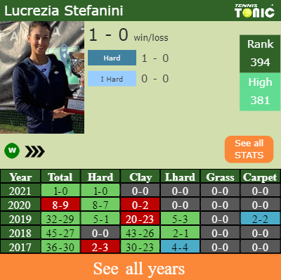 The Italian has a 1-0 win-loss record in 2021, 1-0 on hard (See FULL STATS).