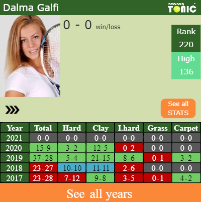 In terms of her career, Galfi has an overall 202-131 record. She has a positive 98-43 record on hard.