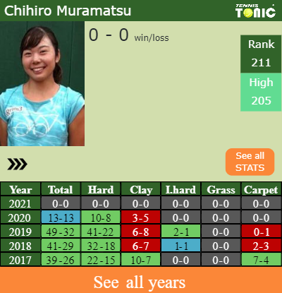 Talking about her overall career, Chihiro has an overall 183-128 record. She has a positive 135-81 record on hard.