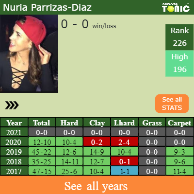 In terms of her career, Parrizas-Diaz has an overall 152-75 record. She has a positive 71-27 record on hard.