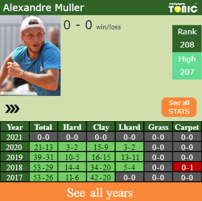 In terms of his career, Muller has an overall 252-145 record. He has a positive 77-36 record on hard.