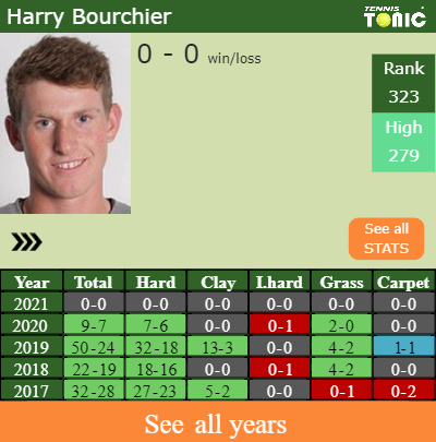 In terms of his career, Bourchier has an overall 186-152 record. He has a positive 134-119 record on hard.