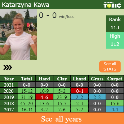 Talking about her overall career, Kawa has an overall 212-140 record. She has a positive 58-40 record on hard.