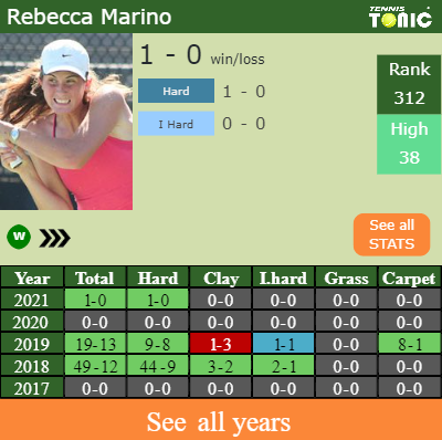 - Rebecca MarinoMarino – Viktoriya TomovaTomova (0-0) – H2H and prediction