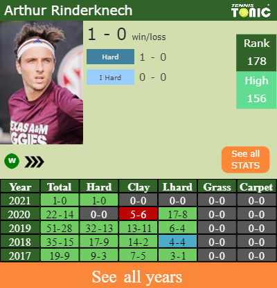 In the qualifications, Rinderknech had a good straight sets win against Masur (7-63 6-3). During the match Rinderknech scored 72 points vs Masur’s 56. Arthur was quite aggressive to blast 34 winners.