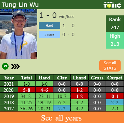 Wu has a 1-0 win-loss record in 2021, 1-0 on hard (See FULL STATS).