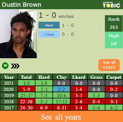 Brown has a 1-0 win-loss record in 2021, 1-0 on hard (See FULL STATS).