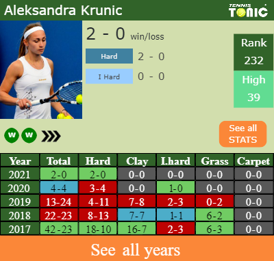 Krunic has a 2-0 win-loss record in 2021, 2-0 on hard (See FULL STATS).