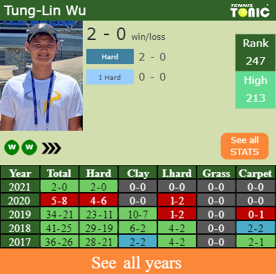 Tung-Lin has a 2-0 win-loss record in 2021, 2-0 on hard (See FULL STATS).