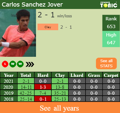 Sanchez has a 2-1 win-loss record in 2021, 2-1 on clay (See FULL STATS).