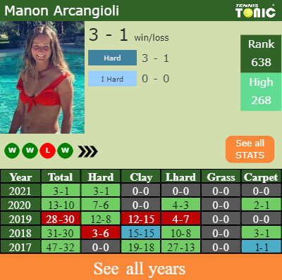 Manon has a 3-1 win-loss record in 2021, 3-1 on hard (See FULL STATS).