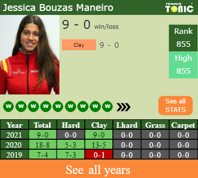 The Spaniard has a 9-0 win-loss record in 2021, 9-0 on clay (See FULL STATS).