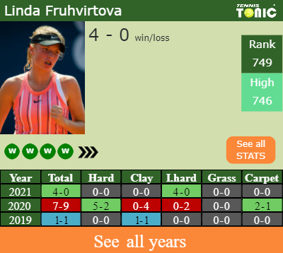Linda has a 4-0 win-loss record in 2021, 4-0 on indoor hard courts (See FULL STATS).