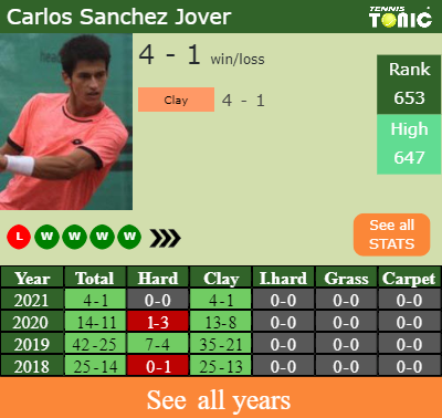 The Spaniard has a 4-1 win-loss record in 2021, 4-1 on clay (See FULL STATS).