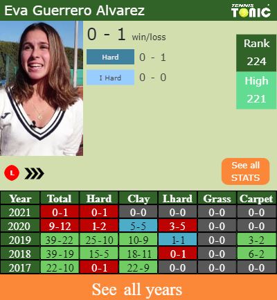 - Eva Guerrero AlvarezGuerrero Alvarez – Sofya LansereLansere (0-0) – H2H and prediction