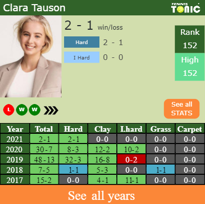 Clara has a 2-1 win-loss record in 2021, 2-1 on hard (See FULL STATS).