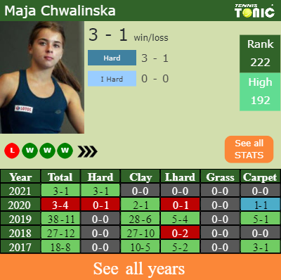 Chwalinska has a 3-1 win-loss record in 2021, 3-1 on hard (See FULL STATS).