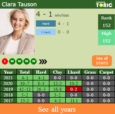 Clara has a 4-1 win-loss record in 2021, 4-1 on hard (See FULL STATS).