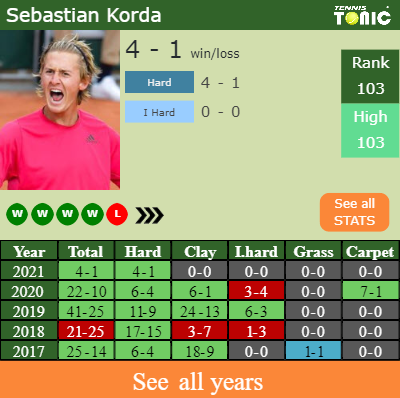 The American has a 4-1 win-loss record in 2021, 0-0 on indoor hard courts (See FULL STATS).
