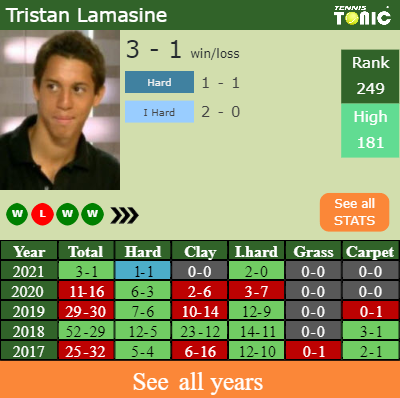Lamasine has a 3-1 win-loss record in 2021, 2-0 on indoor hard courts (See FULL STATS).