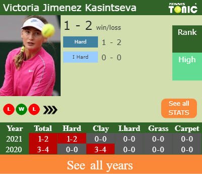 There is no head to head record between Victoria Jimenez Kasintseva and Jia-Jing Lu since this will be the first time that they will face off in the main tour.