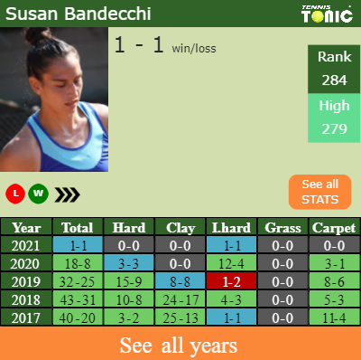 Bandecchi has a 1-1 win-loss record in 2021, 1-1 on indoor hard courts (See FULL STATS).