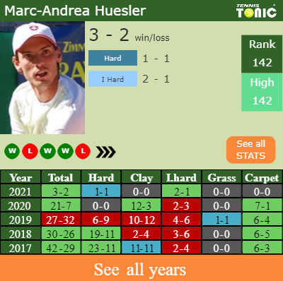 - Marc-Andrea HueslerHuesler – Benjamin BonziBonzi (0-0) – H2H and prediction