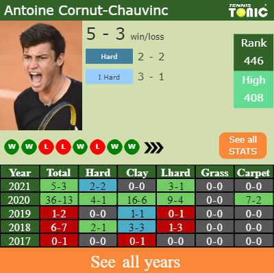 Cornut-Chauvinc has a 5-3 win-loss record in 2021, 3-1 on indoor hard courts (See FULL STATS).