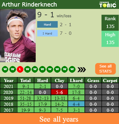 Rinderknech’s best result of the current year was getting to the final in the Istanbul Challenger.
