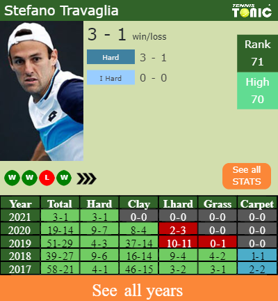 Travaglia has a 3-1 win-loss record in 2021, 3-1 on hard (See FULL STATS).
