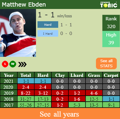 Matthew has a 1-1 win-loss record in 2021, 1-1 on hard (See FULL STATS).