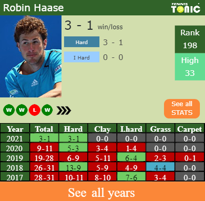 Haase has a 3-1 win-loss record in 2021, 3-1 on hard (See FULL STATS).
