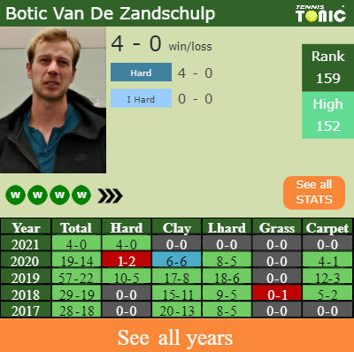 The Dutch has a 4-0 win-loss record in 2021, 4-0 on hard (See FULL STATS).