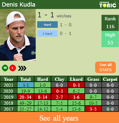 Talking about his overall career, Kudla has an overall 390-294 record. He has a positive 80-49 record on indoor hard courts.