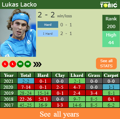 Lacko has a 2-2 win-loss record in 2021, 2-1 on indoor hard courts (See FULL STATS).