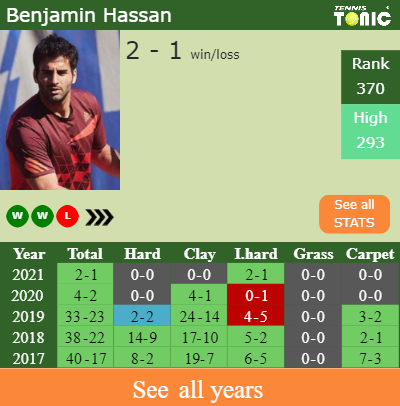 The Lebanese has a 2-1 win-loss record in 2021, 0-0 on hard (See FULL STATS).