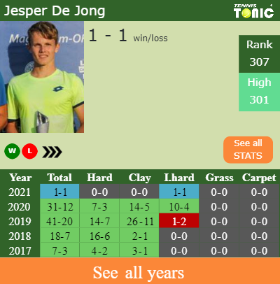 Talking about his overall career, De Jong has an overall 98-43 record. He has a positive 41-18 record on hard.