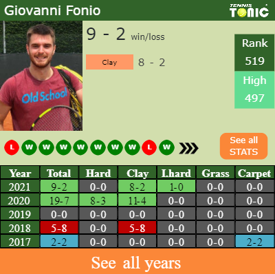 Giovanni has a 9-2 win-loss record in 2021, 1-0 on indoor hard courts (See FULL STATS).