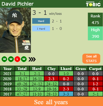 Pichler has a 3-1 win-loss record in 2021, 1-0 on indoor hard courts (See FULL STATS).