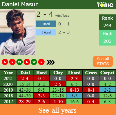 The German has a 2-4 win-loss record in 2021, 2-3 on indoor hard courts (See FULL STATS).