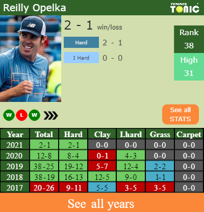 The American has a 2-1 win-loss record in 2021, 2-1 on hard (See FULL STATS).