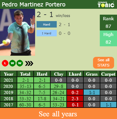 Pedro has a 2-1 win-loss record in 2021, 2-1 on hard (See FULL STATS).