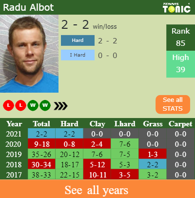 Albot has a 2-2 win-loss record in 2021, 2-2 on hard (See FULL STATS).
