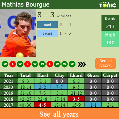 Mathias has a 8-3 win-loss record in 2021, 6-2 on indoor hard courts (See FULL STATS).