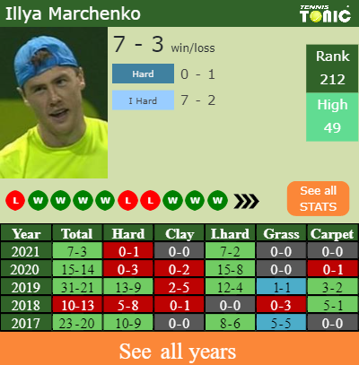Marchenko has a 7-3 win-loss record in 2021, 7-2 on indoor hard courts (See FULL STATS).