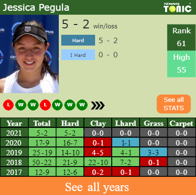 The American has a 5-2 win-loss record in 2021, 5-2 on hard (See FULL STATS).