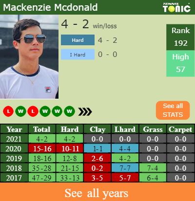 Mackenzie has a 4-2 win-loss record in 2021, 4-2 on hard (See FULL STATS).